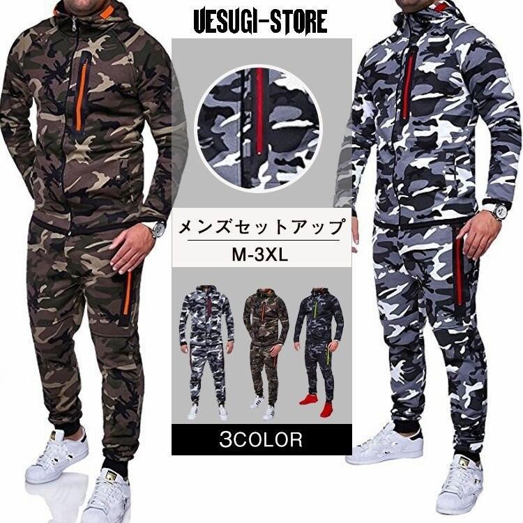 セットアップ スウェット上下 スエット上下 メンズ 上下セット ジャージ パーカー パンツ 普段着 ルームウェア スポーツウェア カモフラ 迷彩 フード付き Utz033 上杉ストア 通販 Yahoo ショッピング